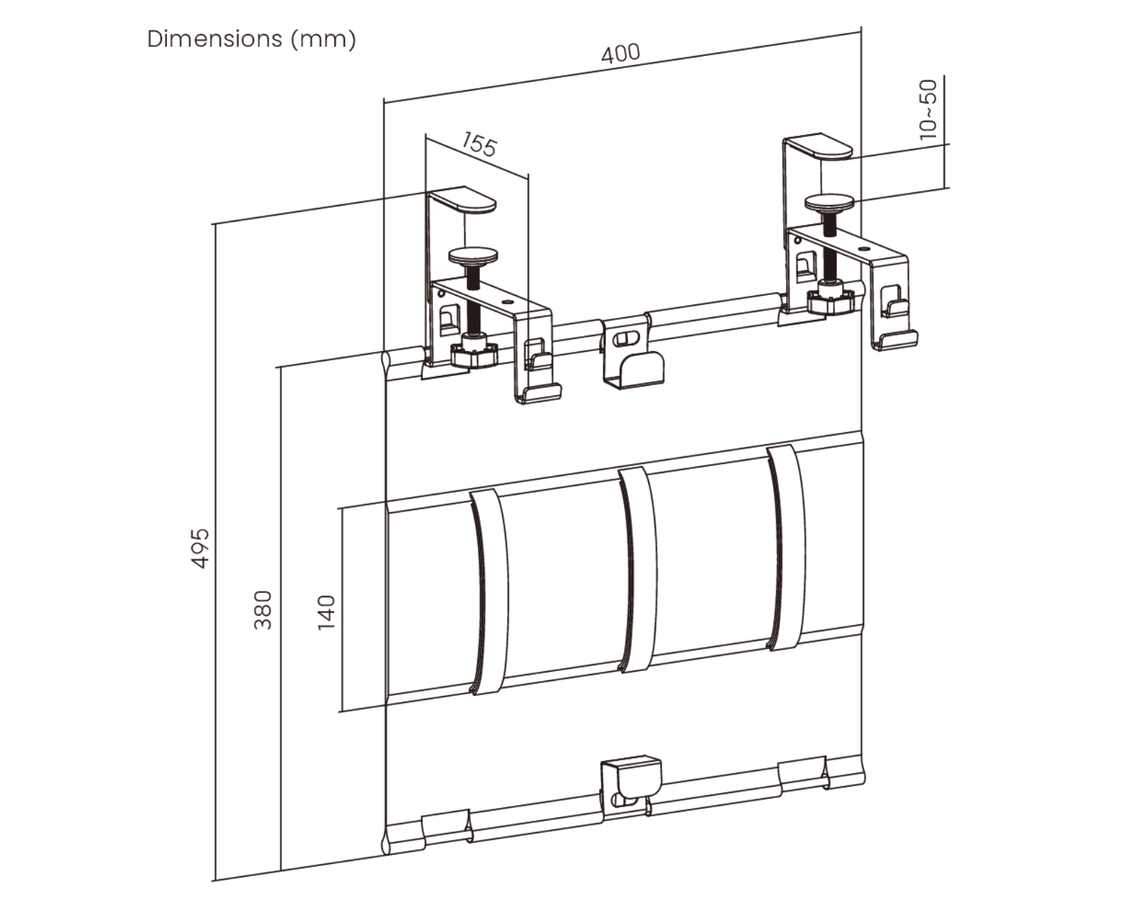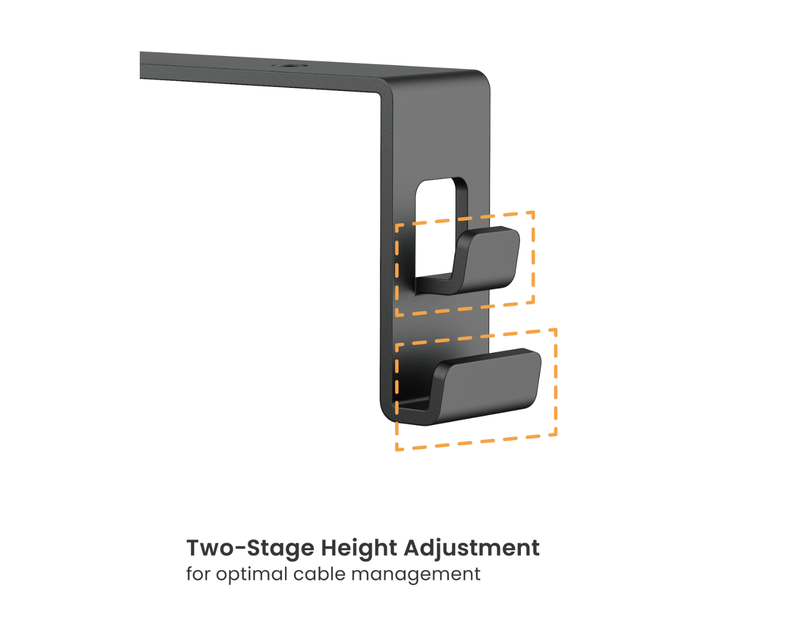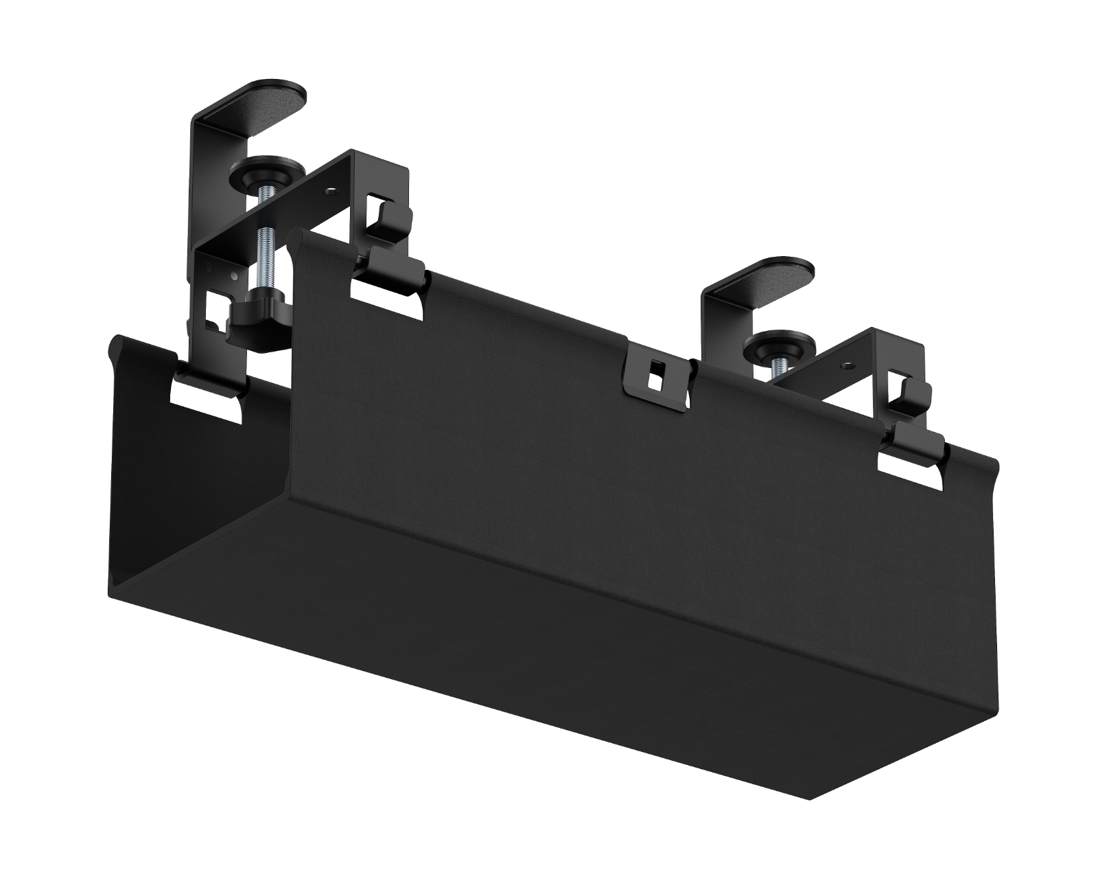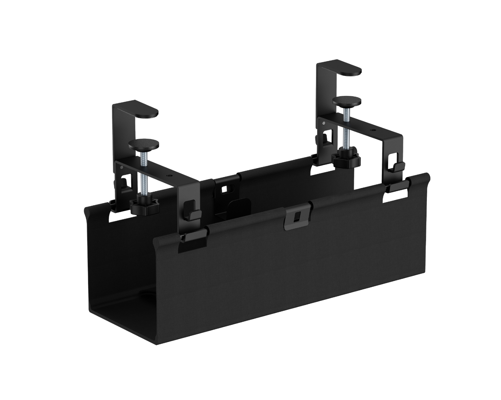 Kabelkanal mit Tischbefestigung von MaxMount versteckt Kabel und Leitungen effektiv unter dem Schreibtisch. Der Kabelkanal lässt sich einfach mit der Tischbefestigung montieren und bietet eine höhenverstellbare Funktion in zwei Positionen, was Flexibilität für verschiedene Kabel und Geräte gewährleistet. Der Kabelkanal besteht aus einer Kombination von Stahl, Kunststoff und Oxford-Gewebe mit einer pulverbeschichteten Oberfläche, die sowohl Langlebigkeit als auch ein professionelles Aussehen bietet.Der Kabelkanal hat eingebaute Halterungen für eine sichere Kabelverwaltung und wird mit zwei Kabelhaken sowie einem 2 Meter langen verstellbaren Kabelbinder für optimierte Verkabelung geliefert. Mit einer Tragfähigkeit von bis zu 5 kg wird die Funktionalität und Benutzerfreundlichkeit an verschiedenen Arbeitsplätzen sichergestellt.
