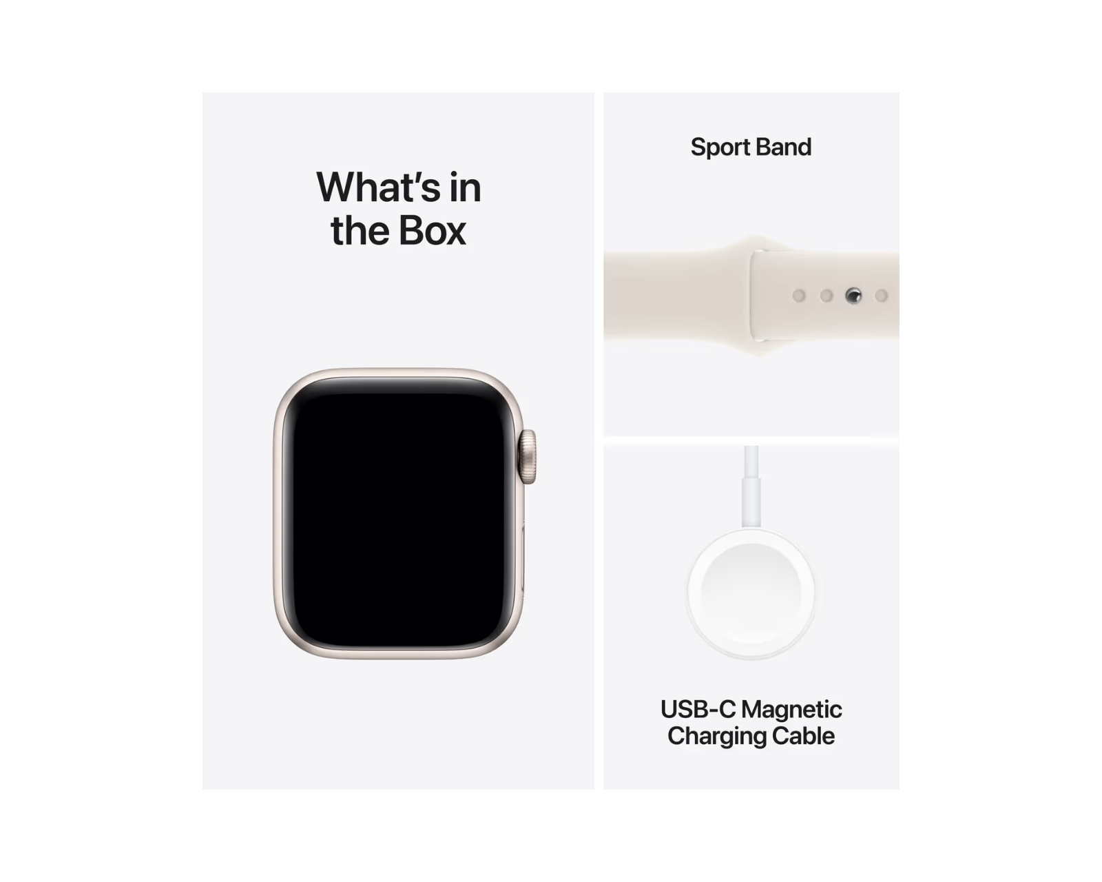 SE 2. Gen ist eine Smartwatch von Apple, die Fitness- und Gesundheitsüberwachung mit moderner Technik kombiniert. Dieses Modell ist mit GPS ausgestattet, um Bewegungen im Freien zu verfolgen, und einem Dual-Core-Prozessor für eine schnellere Leistung. Mit Fokus auf Gesundheit bietet sie eine Herzfrequenzmessung, um dein Herz in Echtzeit zu überwachen.Das robuste Design der Apple Watch SE 2. Gen gewährleistet Haltbarkeit, während das wasserdichte Gehäuse bis zu 50 Meter tief tauchen kann, was sie geeignet für Schwimmen und andere Wasseraktivitäten macht. Ein integrierter Kompass und eine Höhenmessung liefern den Nutzern wertvolle Informationen während der Aktivitäten im Freien. Die Messung der Schlafqualität gibt Einblicke in deine Gesundheit, die direkt über die App auf der Uhr verfügbar sind. Darüber hinaus verfügt sie über eine große Auswahl an anpassbaren Zifferblättern, was es einfach macht, die Uhr mit deinem Stil abzustimmen.