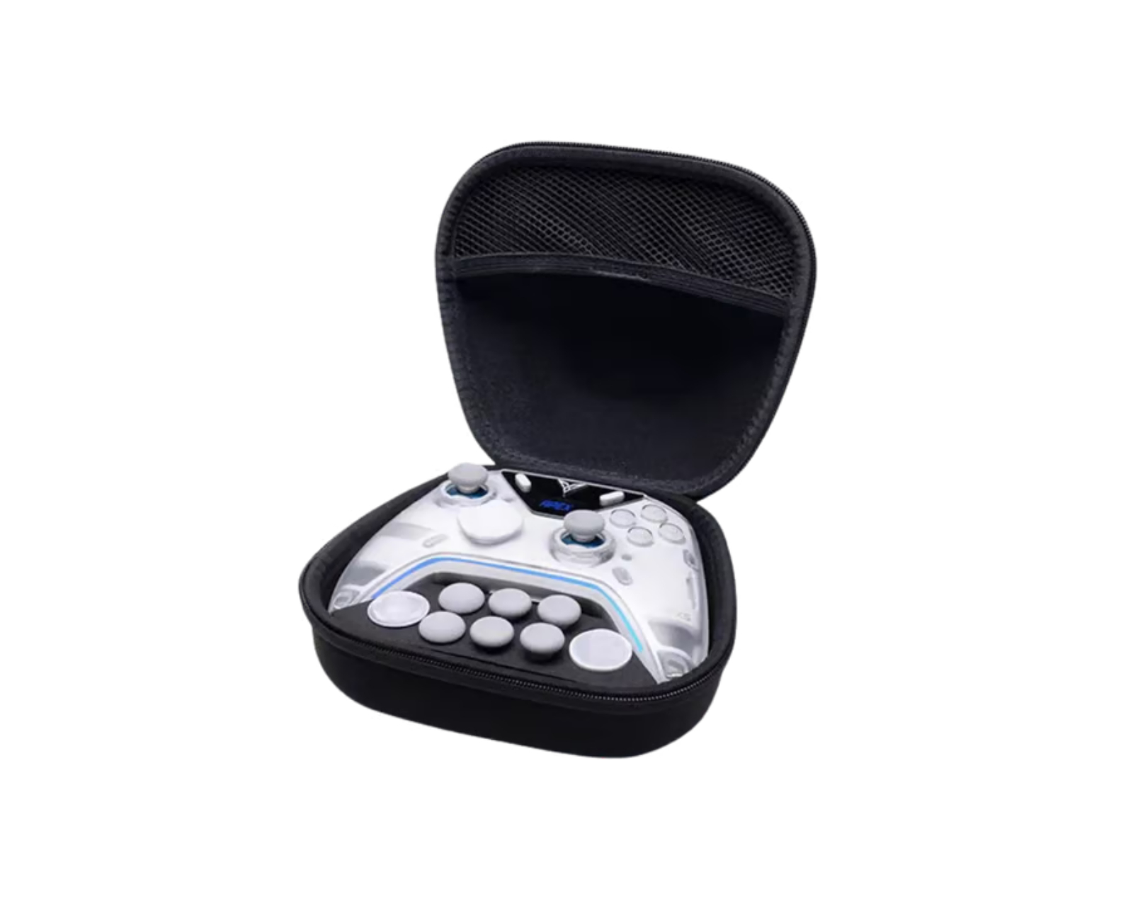 Elite Accessory Case für die Apex & Vader Series ist eine Aufbewahrungslösung von Flydigi. Sie bietet Schutz für den Gamecontroller mit einer speziellen Anpassung für die Flydigi Direwolf/Vader/Apex-Serie Controller. Die Tasche verfügt über einen strapazierfähigen Reißverschluss für einfachen Zugriff und ist so konzipiert, dass sie tragbar und leicht zu transportieren ist. Die harte Außenschale ist dafür konzipiert, Stößen standzuhalten, was von Vorteil für Gamer ist, die oft ihre Ausrüstung transportieren.Das weiche Innenfutter schützt die Controller vor Kratzern und Stößen, um eine sichere Aufbewahrung zu gewährleisten. Die Tasche enthält mehrere Zubehörteile, die für Apex 5, Vader 5 Pro und Direwolf 4 entworfen wurden, darunter 8mm Sticks x 2, 10mm Sticks x 2, Dome 6mm Sticks x 2, Faceted D-pad x 1, Rectangular Disc D-pad x 1 sowie einen Beutel zur Aufbewahrung kleiner Teile. Dies ermöglicht dem Benutzer, seinen Gamecontroller nach eigenen Vorlieben und Spielstilen anzupassen.