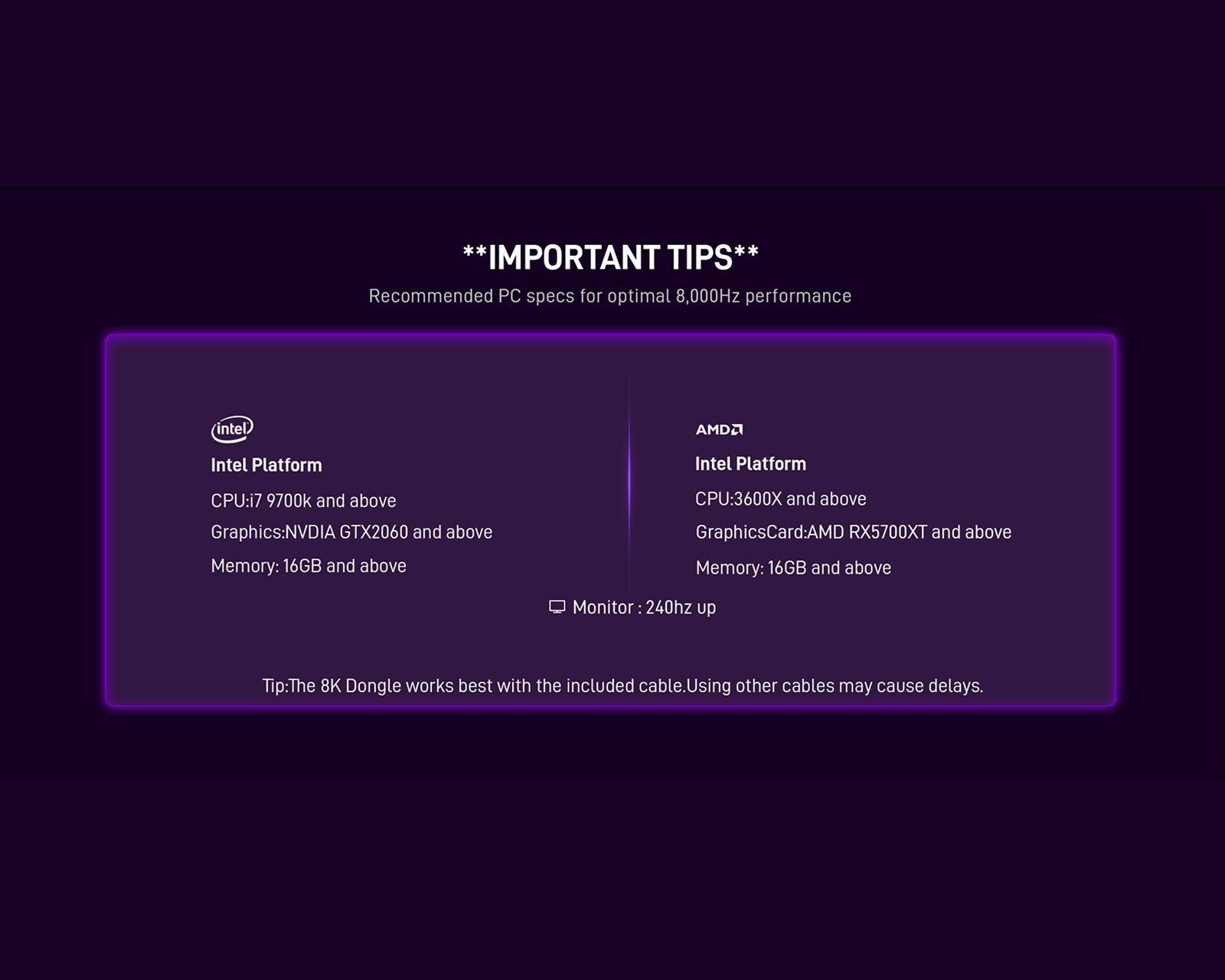 8K II Dongle von LAMZU, der eine Aktualisierungsrate von bis zu 8000 Hz ermöglicht, was ein schnelles und reaktionsfreudiges Erlebnis bietet. Er bietet eine signifikante Erhöhung der Datenübertragung, die besonders vorteilhaft für Spiele mit hohen Aktualisierungsraten ist. Der Dongle ist dafür konzipiert, einen Vorteil in FPS- und MOB-Spielen zu bieten, indem er Mikrosekunden-Niveaus von Reaktionszeiten liefert.Das Gerät ermöglicht es den Benutzern, sich einfach mit einer webbrowsergesteuerten, ein-Tasten-Konfiguration zu verbinden. Durch die Verwendung des mitgelieferten Kabels maximiert es die Leistung und bietet eine Abtastrate von 8000 Hz.