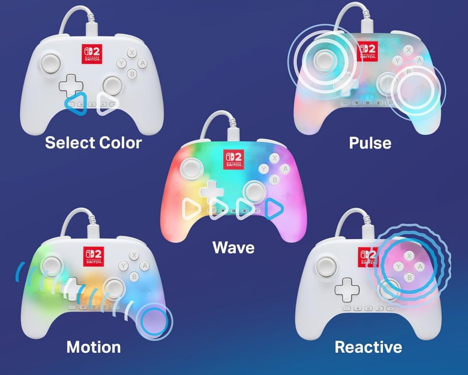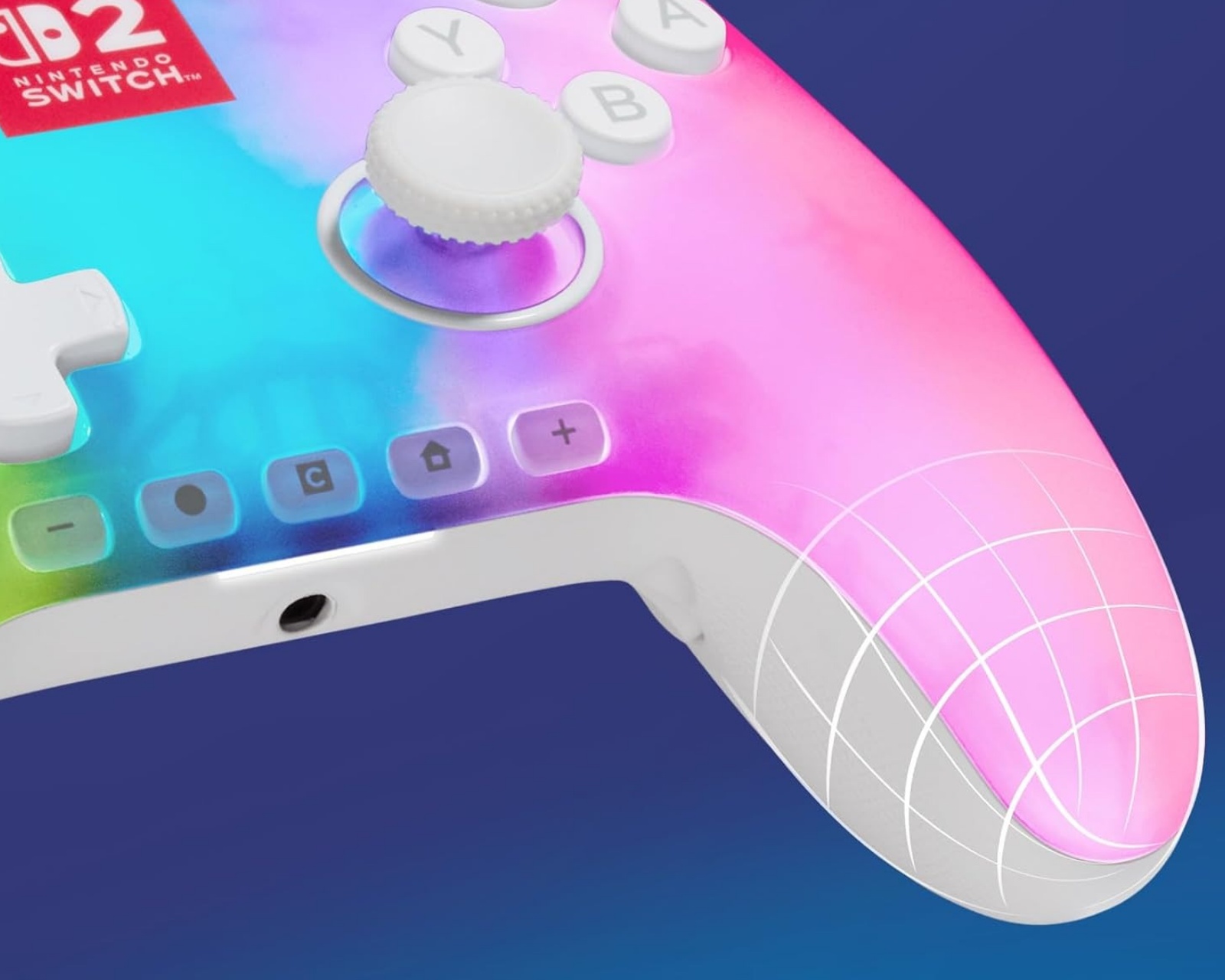 Advantage Trädbunden Kontrolle für Nintendo Switch 2 ist ein Controller von PowerA, der RGB-Beleuchtung und anpassbare Tasten bietet. Er ist offiziell lizenziert und fördert ein reibungsloses Spielerlebnis mit Hall-Effekten, was ihn sowohl für Casual- als auch für ernsthaftere Gamer geeignet macht. Der Controller legt auch Wert auf Komfort und langfristigen Gebrauch.Der Controller ist mit Hall-Effektmodulen ausgestattet, die kontaktlose magnetische Sensoren in den Thumbsticks verwenden, um ein präziseres und langlebigeres Gefühl zu bieten. Die fortschrittlichen Spieltasten können vor Ort ohne Zugriff auf die Systemeinstellungen zugewiesen werden. Die GameChat-Funktion wird einfach über die C-Taste aktiviert. Der Controller verfügt auch über Lautstärkeregler zur Anpassung der Headset-Lautstärke, eine Stummschaltfunktion für das Mikrofon und EQ-Einstellungen, die ein tieferes Klangerlebnis bieten. Er ist leicht und ergonomisch gestaltet, damit er während langer Spielsitzungen gut in der Hand liegt. Mit einem abnehmbaren 10 Fuß langen USB-C-Kabel können Gamer ungehindert ohne Batterieprobleme spielen. Zu den weiteren Eigenschaften gehören integrierte Antifriktionringe für eine reibungslose Thumbstick-Navigation und ein 3,5 mm Audioausgang für Headsets.
