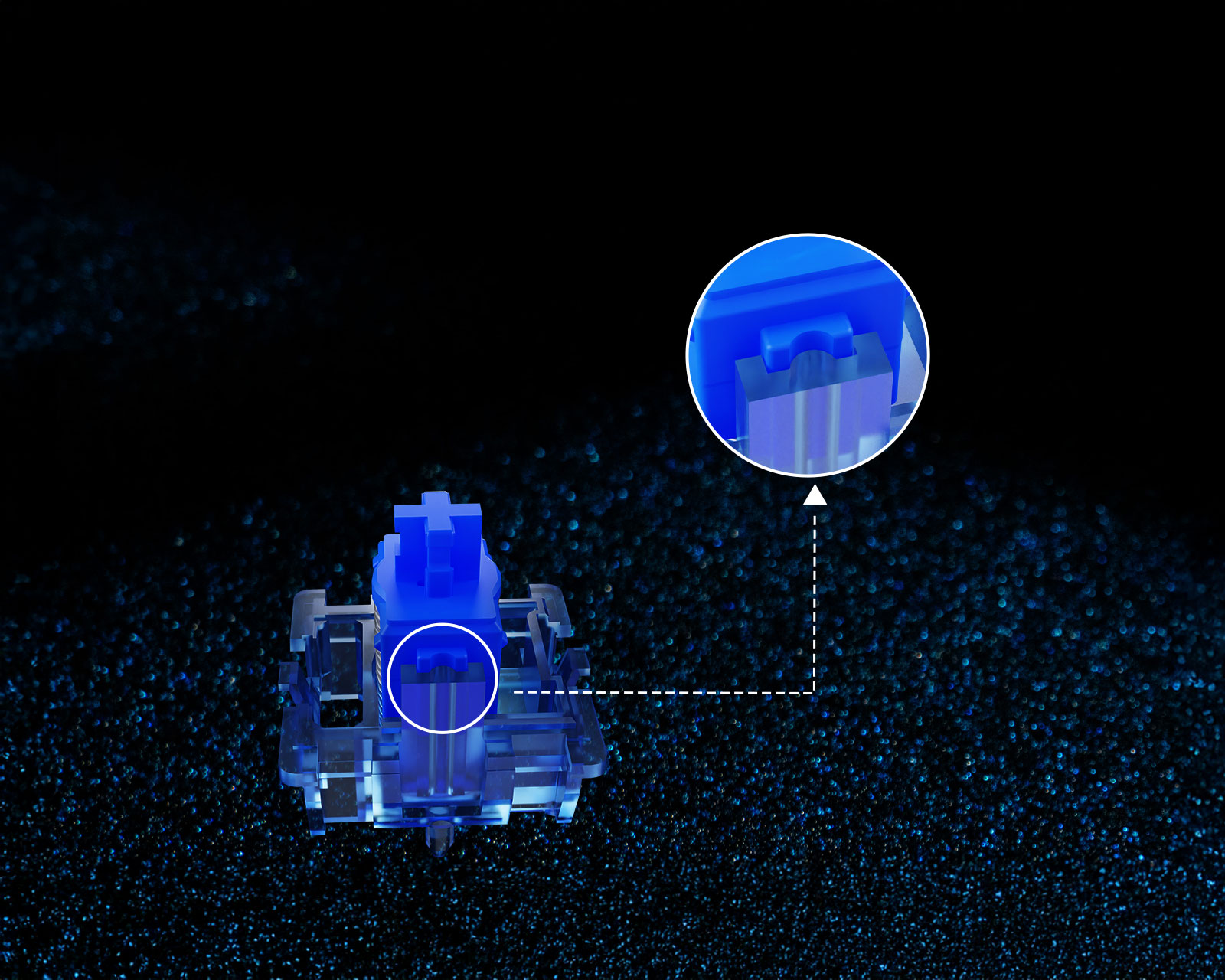 Magnetic Jade Sapphire HE ist ein linearer Schalter von Gateron. Er bietet eine Anfangskraft von 36±5gf und ein bodenseitiges Design, das das Wackeln des Schafts effektiv reduziert. Mit einem Gesamthub von 3,5±0,1 mm und einem Durchschlag von 50±10gf bietet er ein stabiles und zuverlässiges Gefühl während der Benutzung.Das obere Gehäuse des Schalters ist transparent und leuchtet mit einem tiefblauen Glitzereffekt. Der gewölbte Lichtleiterdiffusor erhöht die Lichtdurchlässigkeit und sorgt für eine weichere Lichtverteilung. Er verfügt außerdem über eine spezielle 20-mm-Feder und ist werkseitig geschmiert, was für ein sanftes und angenehmes Gefühl bei der Bedienung des Schalters sorgt.