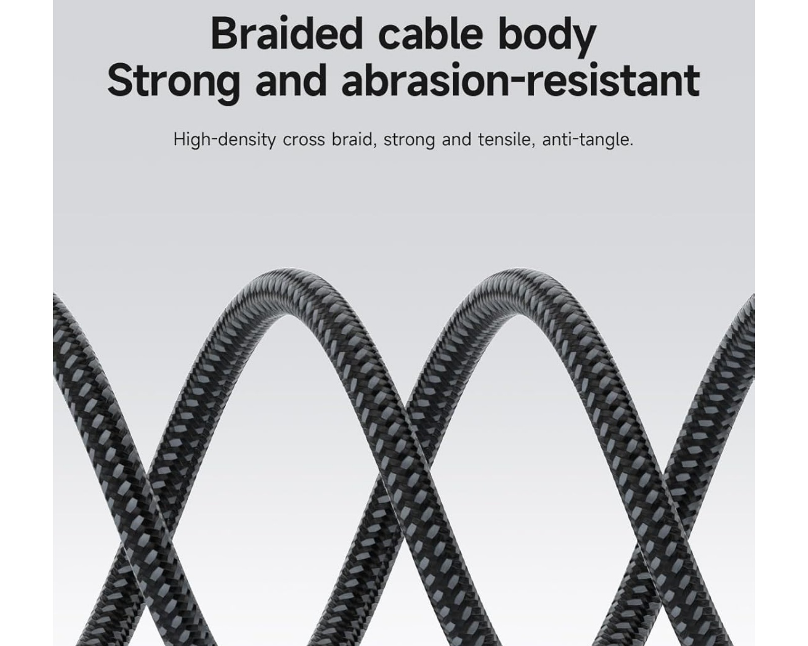 Der geflochtene Draht verleiht dem Kabel hohe Strapazierfähigkeit und Widerstandsfähigkeit gegen Verwicklung dank der dichten Kreuzwebung. Ausgestattet mit einem smarten E-Marker-Chip für schnelles Laden, der Geräte intelligent erkennt und Strom und Spannung für sicheres Laden anpasst, sowie einer weichen und anti-interferierenden Grafenschirmung, die eine hohe elektrische Leitfähigkeit hat.