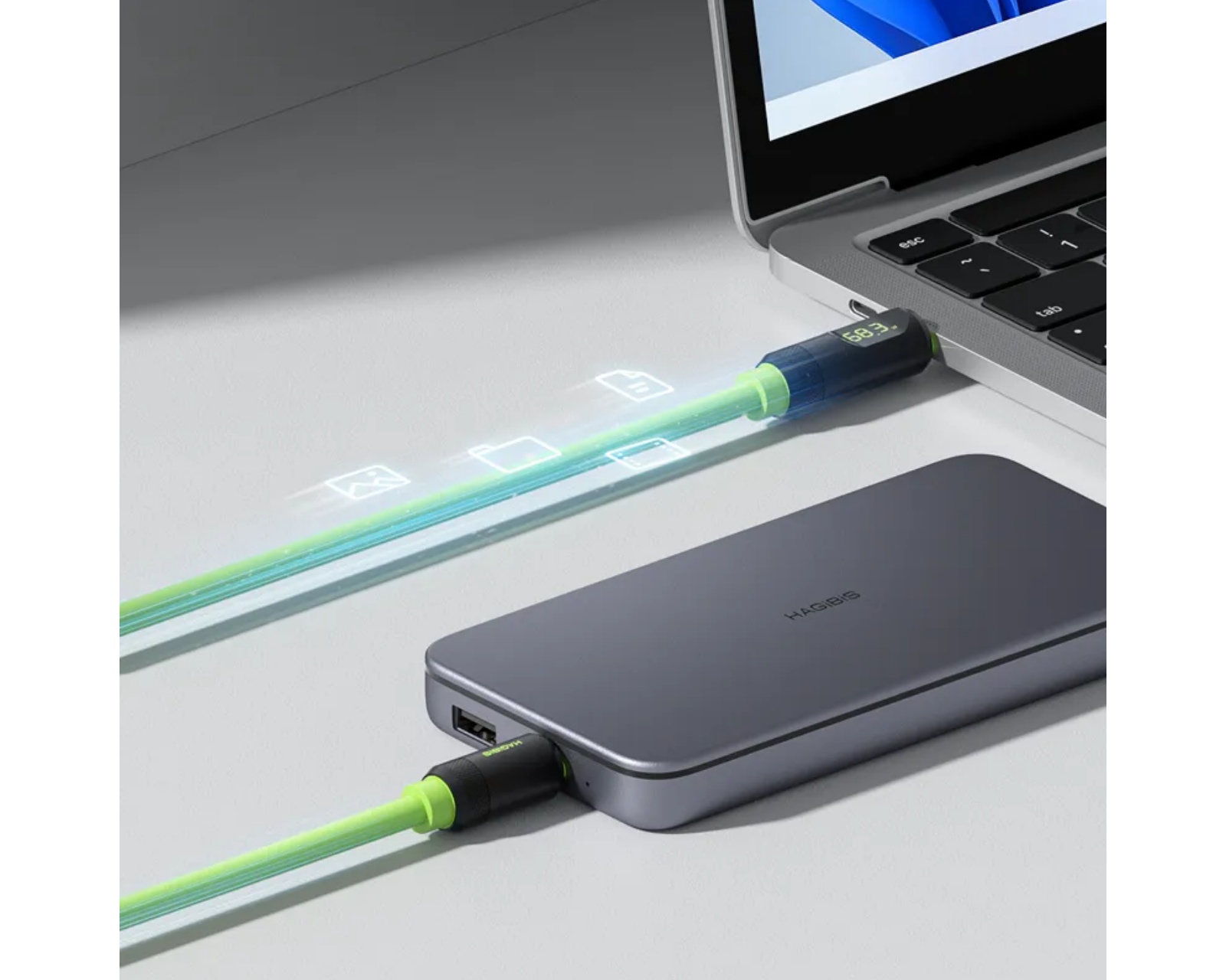 USB4 Kabel SX02 1M ist ein USB-C-Kabel von Hagibis, das schnelles und effizientes Laden sowie Datenübertragung bietet. Das Kabel unterstützt Ladegeschwindigkeiten von bis zu 240W (48V 5A) und ist kompatibel mit PD3.1, was gewährleistet, dass es sowohl mit modernen als auch mit älteren Geräten funktioniert. Es kann verwendet werden, um alles von Smartphones bis hin zu Laptops aufzuladen.Das Kabel ist so konzipiert, dass es UHD-Auflösung unterstützt und es ermöglicht, ein Laptop an einen externen Bildschirm mit einer Auflösung von bis zu 8K@60Hz oder zwei 4K@60Hz-Bildschirme gleichzeitig anzuschließen, vorausgesetzt, die Geräte unterstützen DP Alt Mode. Mit einer Übertragungsgeschwindigkeit von bis zu 40Gbps, die dem USB4.0-Standard folgt, können Benutzer große Dateien, einschließlich Musik und Filme, schnell übertragen. Das Kabel ist auch abwärtskompatibel mit USB4-Geräten, die 20Gbps unterstützen.