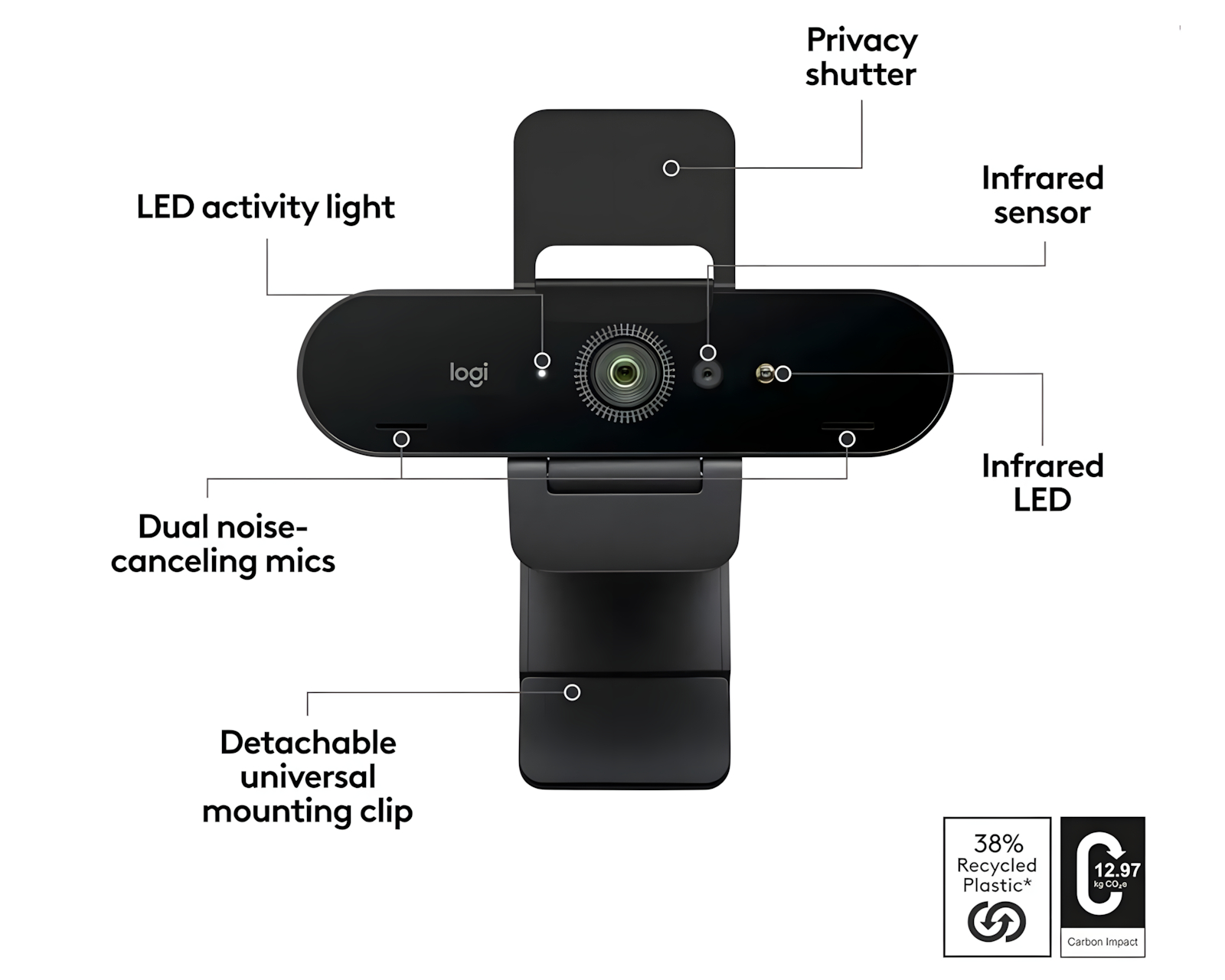 BRIO 4K ist eine professionelle Webcam von Logitech, die außergewöhnliche Videoqualität bietet und für den geschäftlichen Einsatz konzipiert ist. Mit einer Auflösung von bis zu 4K bei 30 fps, Autofokus und 5-fach digitalem Zoom sorgt sie dafür, dass jede Videokonferenz klar und detailreich wird. Sie unterstützt auch Windows Hello für eine sichere Anmeldung über Gesichtserkennung.Das Kameragehäuse besteht aus kohlenstoffarmem Aluminium, was eine nachhaltige Konstruktion gewährleistet und gleichzeitig die Umweltbelastung minimiert. Mit der fortschrittlichen RightLight 3-Technologie wird die Belichtung automatisch angepasst, um optimale Bildqualität unter allen Lichtverhältnissen zu gewährleisten. Darüber hinaus verfügt sie über doppelte omnidirektionale Mikrofone mit Geräuschunterdrückung, die Klang klar aus einem Radius von bis zu 1,2 Metern aufnehmen, was sie ideal für professionelle Gespräche macht. Die Webcam ist für Zoom und Google Meet zertifiziert, was eine einfache Integration mit gängigen Meeting-Programmen bedeutet.