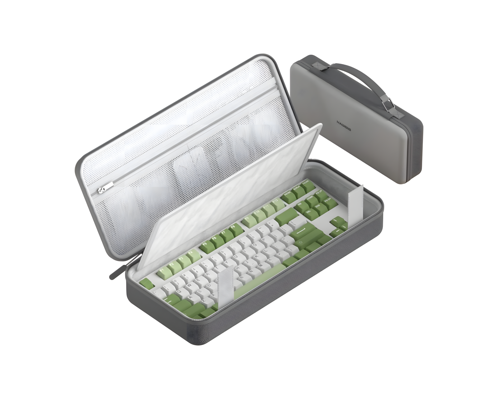 Hagibis Tangentbord Aufbewahrungsbox ist eine harte Hartschalen-Tasche, die Schutz für Geräte mit 68 und 87 Tasten bietet. Sie hat ein großes Fassungsvermögen zur Aufbewahrung von elektronischem Zubehör, einschließlich Tastaturen, Mäusen, Ladegeräten, SSDs, USB-Sticks und SD-Karten. Das Produkt ist so strukturiert, dass es von Gamern und anderen, die eine sichere und tragbare Aufbewahrungslösung benötigen, verwendet werden kann.Die Tasche besteht aus EVA-Material, das einen harten äußeren Schutz gegen Stürze, Kratzer, Stöße und Stoßschutz gegen Spritzwasser bietet. Der innere Bezug ist weich und schützt vor Kratzern, während der durchdachte Schnitt sicherstellt, dass das Zubehör getrennt gehalten wird, um Beschädigungen zu vermeiden. Der Stoff ist aus 900D Oxford, was strapazierfähig und leicht zu reinigen ist. Die Aufbewahrung ist mit separaten Fächern und einem reißverschlusssicheren Netzfach gestaltet, um zu verhindern, dass Gegenstände beim Öffnen herausfallen.