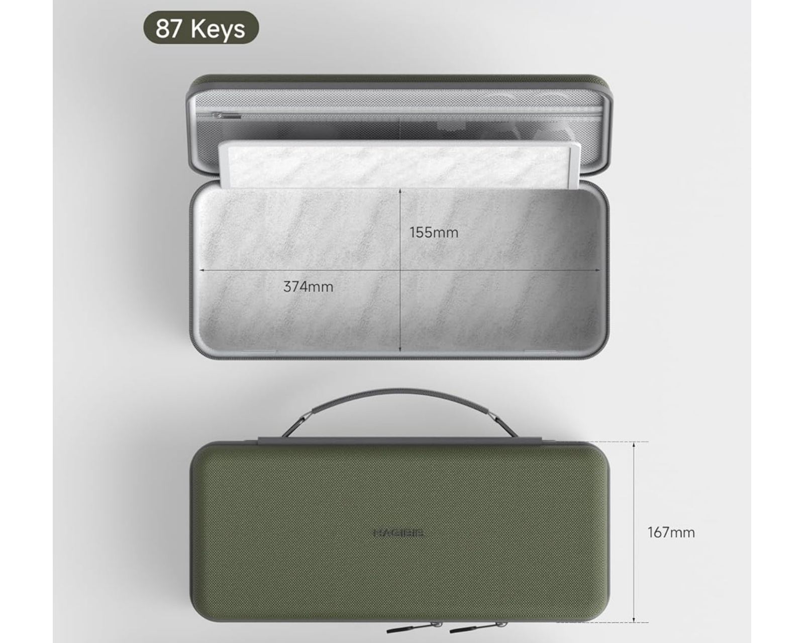 Hagibis Tangentbord Aufbewahrungsbox ist eine harte Hartschalen-Tasche, die Schutz für Geräte mit 68 und 87 Tasten bietet. Sie hat ein großes Fassungsvermögen zur Aufbewahrung von elektronischem Zubehör, einschließlich Tastaturen, Mäusen, Ladegeräten, SSDs, USB-Sticks und SD-Karten. Das Produkt ist so strukturiert, dass es von Gamern und anderen, die eine sichere und tragbare Aufbewahrungslösung benötigen, verwendet werden kann.Die Tasche besteht aus EVA-Material, das einen harten äußeren Schutz gegen Stürze, Kratzer, Stöße und Stoßschutz gegen Spritzwasser bietet. Der innere Bezug ist weich und schützt vor Kratzern, während der durchdachte Schnitt sicherstellt, dass das Zubehör getrennt gehalten wird, um Beschädigungen zu vermeiden. Der Stoff ist aus 900D Oxford, was strapazierfähig und leicht zu reinigen ist. Die Aufbewahrung ist mit separaten Fächern und einem reißverschlusssicheren Netzfach gestaltet, um zu verhindern, dass Gegenstände beim Öffnen herausfallen.