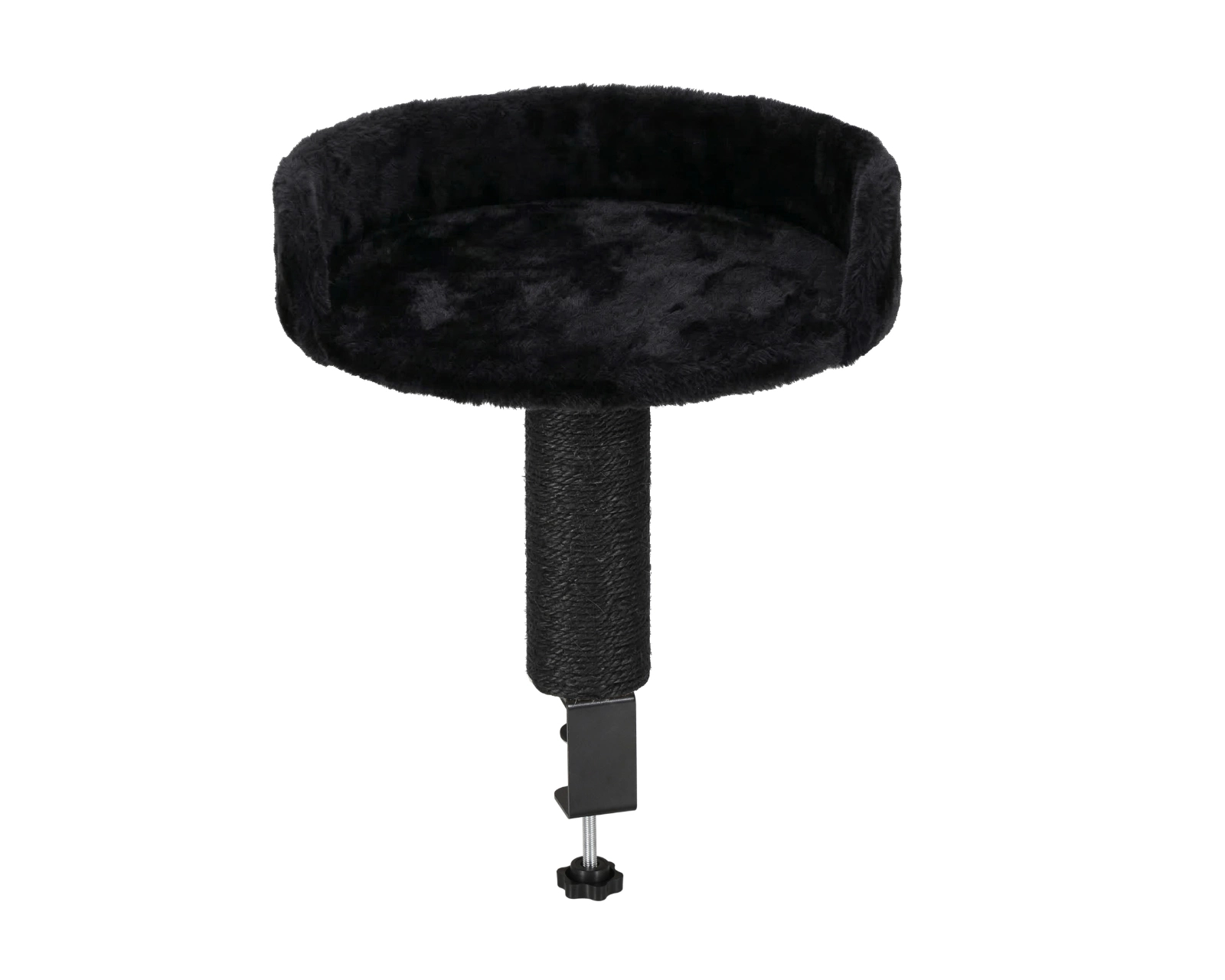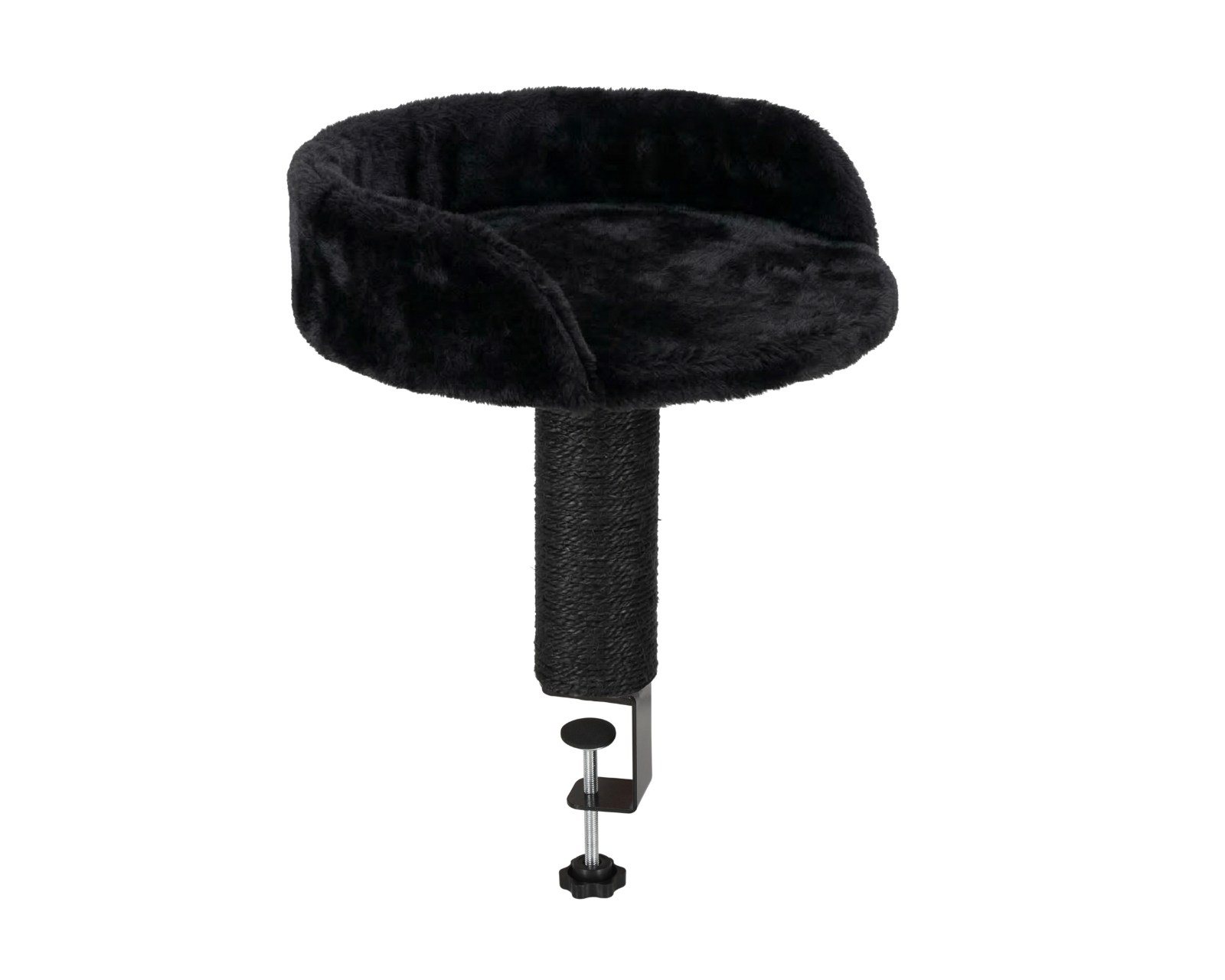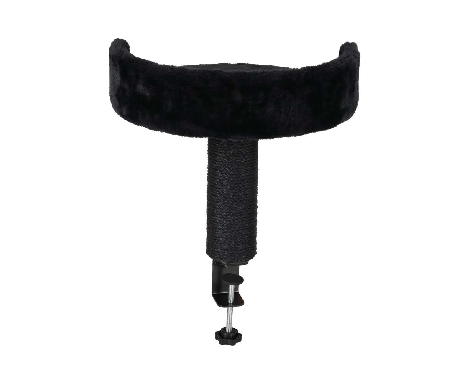 Bordsmonterierte Katzenschlafstelle ist ein Katzenbett von MaxMount, das mit einer Klemme am Schreibtisch befestigt wird. Dieses Design ermöglicht es der Katze, während der Arbeit oder beim Spielen in der Nähe des Benutzers zu bleiben, wodurch ein sicherer und bequemer Ort zum Ausruhen geschaffen wird. Das Katzenbett hat einen Durchmesser von 30 cm und eine Höhe von 29 cm und ist aus hochwertigen Materialien gefertigt, die sowohl Komfort als auch Langlebigkeit gewährleisten.Die Materialwahl priorisiert Weichheit und Halt für die Katze, was es zu einer nützlichen Lösung für Katzenbesitzer macht. Das Klemmsystem ermöglicht eine einfache Montage und Demontage, ohne die Oberfläche des Schreibtisches zu beschädigen. Die Konstruktion stellt zudem sicher, dass das Bett während der Bewegung stabil bleibt, was sowohl dem Benutzer als auch der Katze zugutekommt. Die neutrale weiße Farbe bietet ein ästhetisch ansprechendes Finish, das sowohl für Wohn- als auch für Büroumgebungen geeignet ist.