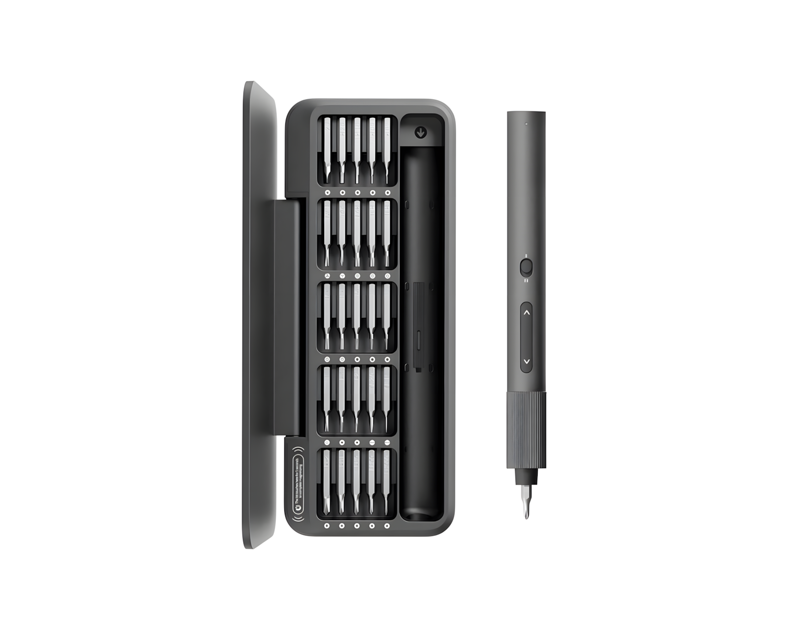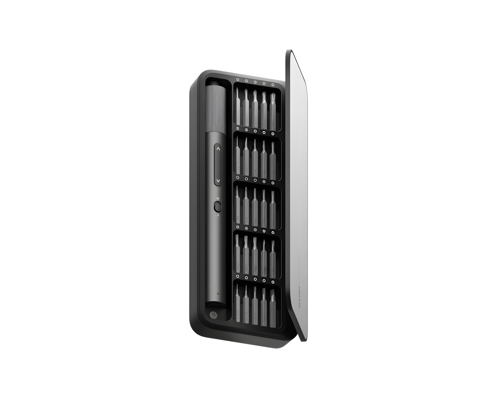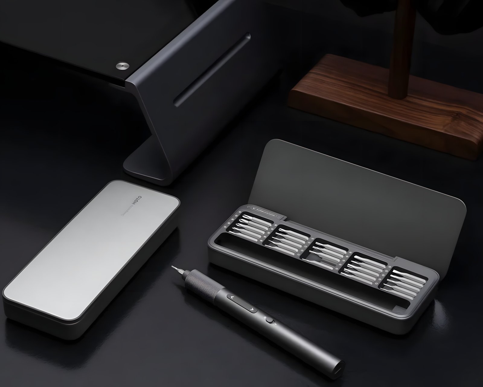 Der Präzisionsschraubendreher ADV Set ist ein elektrischer Präzisionsschraubendreher von HOTO, der Effizienz und Genauigkeit für automatisierte Reparaturen bietet. Er verfügt über einen Motor, der bis zu 170 U/min erreicht, zwei wählbare Drehmomentstufen und ein schattenfreies LED-Licht, um die Sicht bei Arbeiten in engen Räumen zu verbessern. Das Set enthält 25 S2-Stahlbits und einen eingebauten Magnetisierer, um den Bitwechsel zu erleichtern.Der Schraubendreher ist mit einer rutschfesten Oberfläche ausgestattet, die einen komfortablen und stabilen Griff bietet, auch bei längerer Anwendung. Die aufgebrachte Antirutschbeschichtung gewährleistet, dass der Griff sicher bleibt. Die Drehmomenteinstellungen von 0,05 und 0,2 Nm ermöglichen es, das Schrauben für empfindliche Komponenten individuell anzupassen, was für präzise Arbeiten entscheidend ist. Das integrierte LED-Licht bietet Beleuchtung in dunklen Bereichen, was die Genauigkeit beim Schrauben erhöht.
