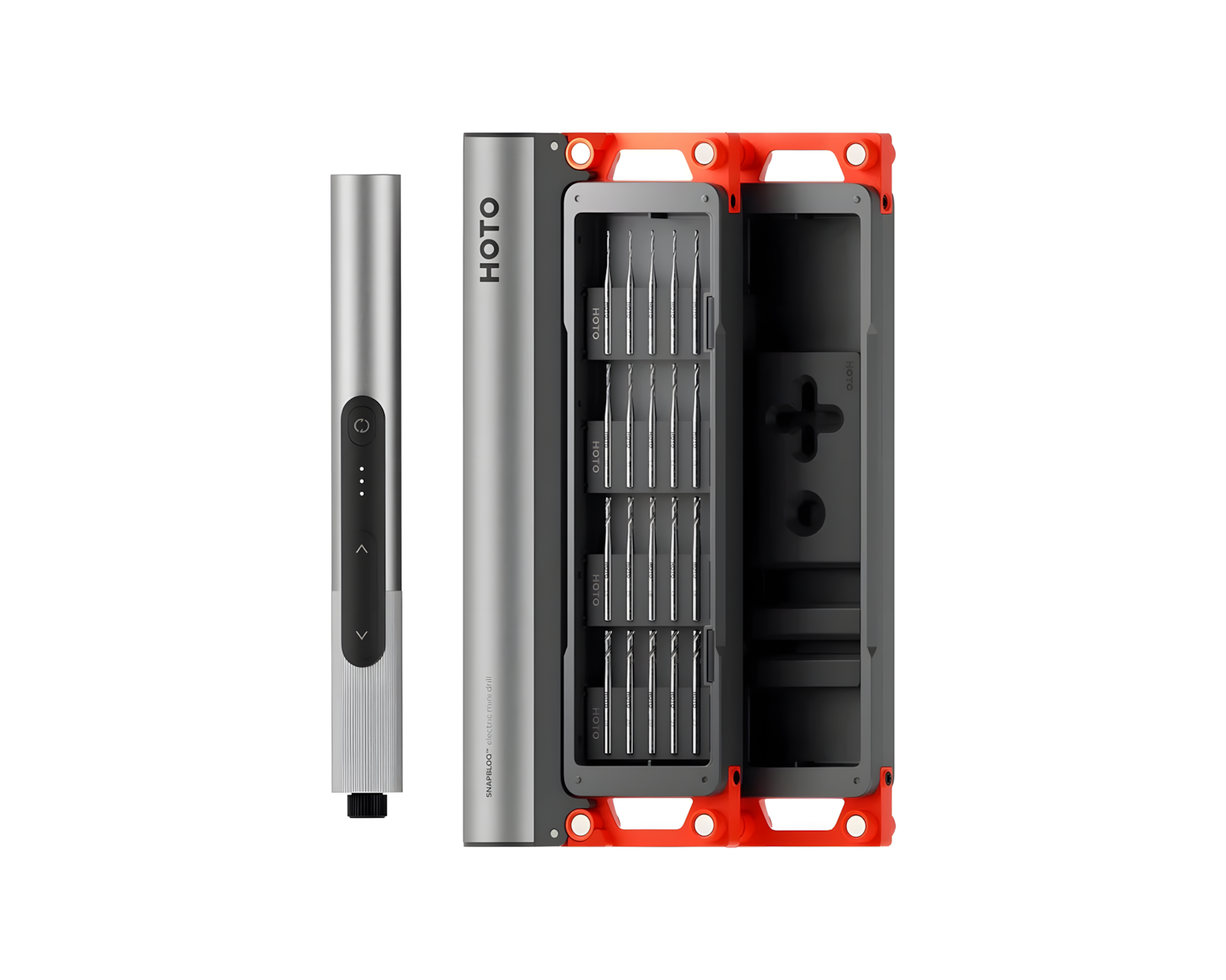 SNAPBLOQ D-A03 ist ein elektrisches Mini-Bohrset von HOTO, das kompakte Kraft bietet. Es ist für die Anwendung von Hobbyisten und DIY-Enthusiasten konzipiert, die Präzision ohne das Tragen schwerer Werkzeuge suchen. Mit einer effektiven Bohrlösung im handlichen Format ermöglicht D-A03 dem Benutzer, mit Genauigkeit zu arbeiten. Das Gewicht des Bohrers beträgt nur 0,24 lb (108 g), was die Handhabung erleichtert.Diese Mini-Bohrmaschine ist mit einem hochleistungsfähigen bürstenlosen Motor ausgestattet, der ein Drehmoment von 0,1 N.m liefert. Die drei Geschwindigkeitsstufen (600, 900 und 1200 U/min) ermöglichen die Anpassung der Geschwindigkeit für verschiedene Aufgaben, von sensiblen Bohrungen bis hin zu kraftvolleren Arbeiten. D-A03 verfügt auch über eine ringförmige LED-Lampe, die die Arbeitsfläche effizient beleuchtet und Schatten verhindert. Mit ihrem leichten und kompakten Design kann der Benutzer einfach in engen Räumen arbeiten.