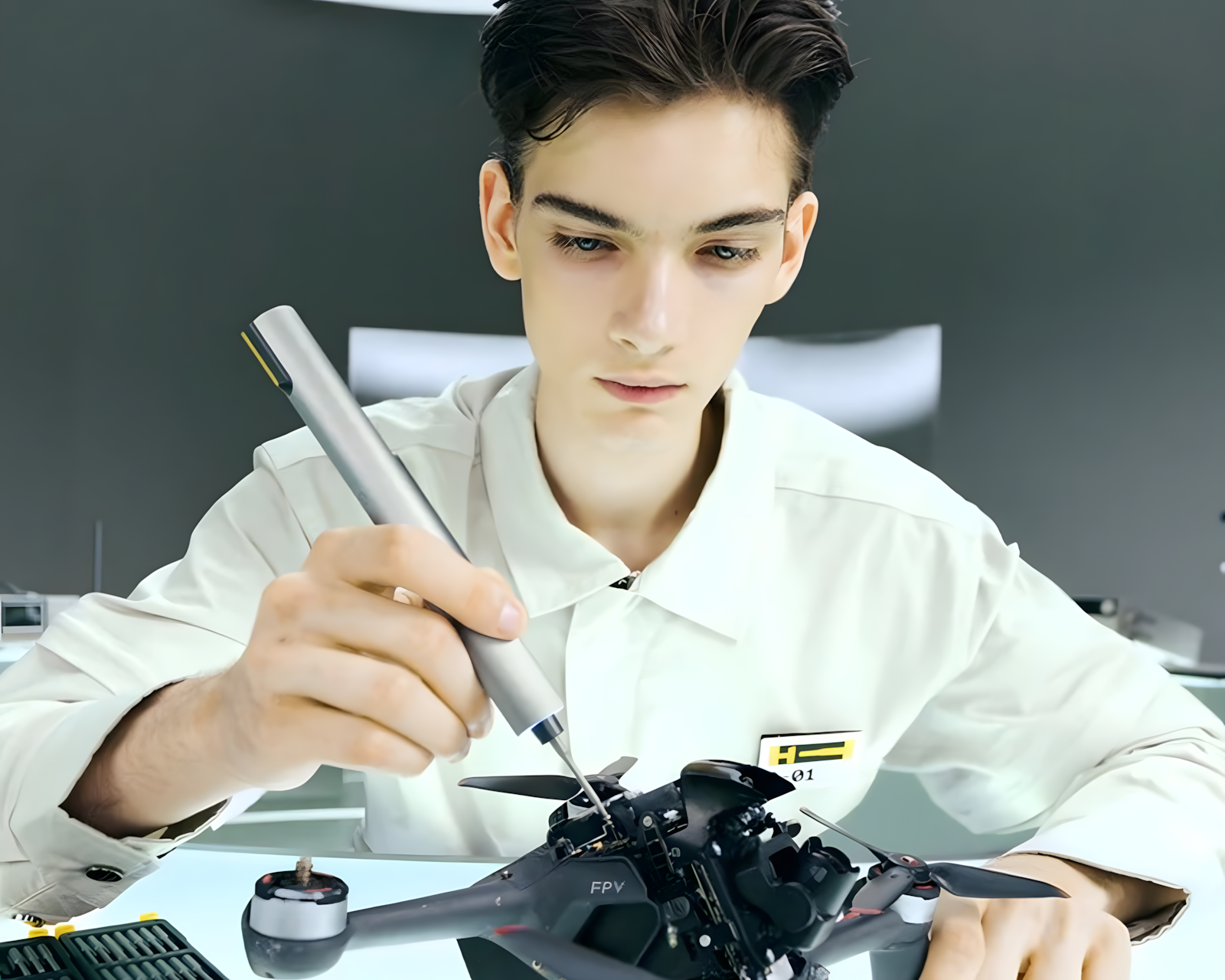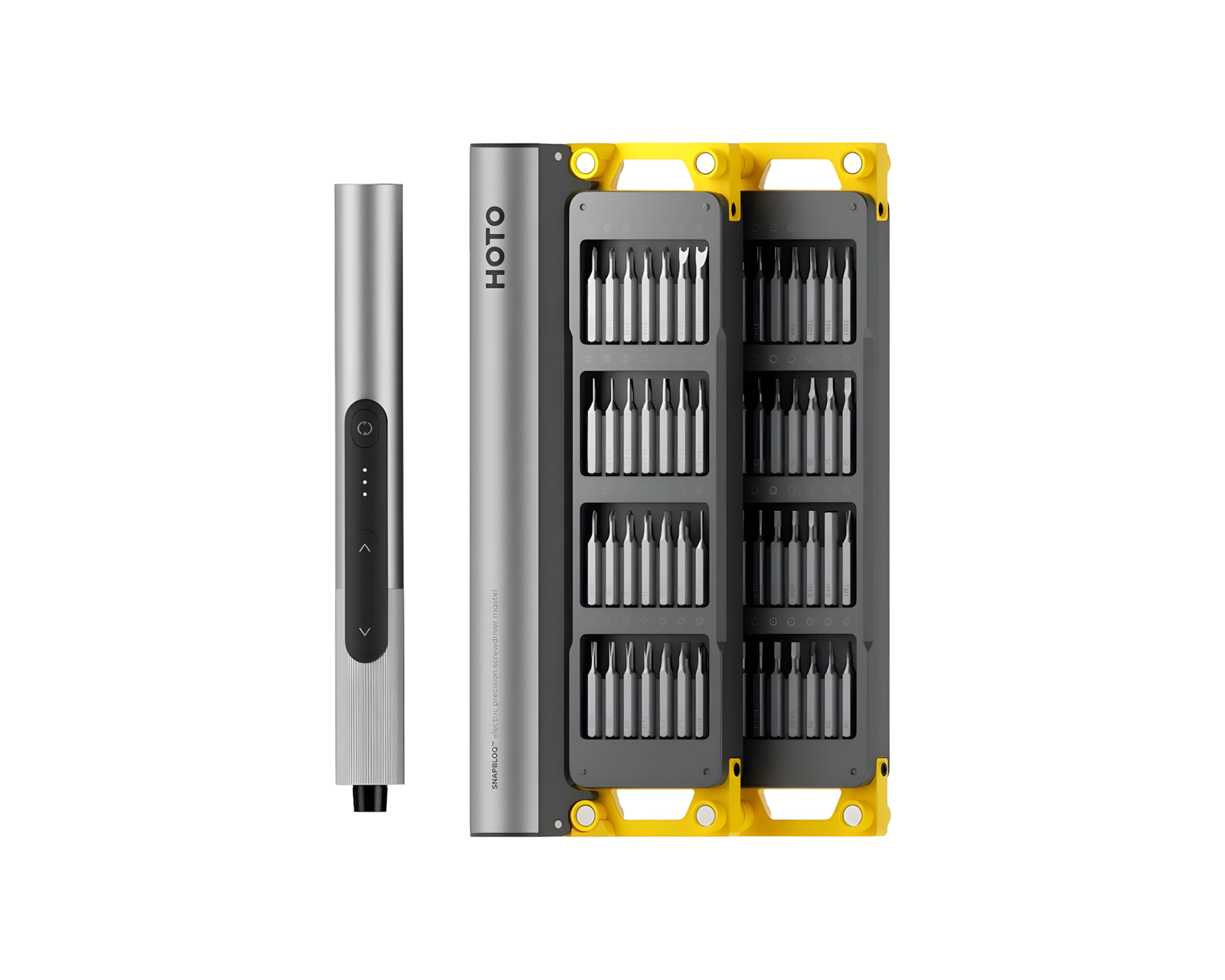 SNAPBLOQ S-A01 ist ein elektrischer Präzisionsschraubendreher von HOTO, der entwickelt wurde, um M3-Schrauben präzise und mühelos zu handhaben. Er verfügt über ein effektives Drehmoment von 0,5 Nm und bietet drei einstellbare Drehmomentstufen (0,05/0,35/0,5 Nm) für exakte Steuerung. Dieses Werkzeug ist sowohl für Hobbyisten als auch für Profis geeignet, die mit Elektronik oder Reparaturprojekten arbeiten.Der Schraubendreher ist mit einem bürstenlosen Motor ausgestattet, der überlegene Stabilität und hohe Effizienz bietet, sowie einen leisen Betrieb und gleichmäßige Leistung gewährleistet. Er ist mit einem ergonomischen, rutschfesten Gehäuse und intuitiven Tasten ausgestattet, die ein optimales Schrauberlebnis bieten. Eine integrierte Rund-LED-Beleuchtung ermöglicht das Arbeiten in engen Räumen, indem sie den Arbeitsbereich ausleuchtet. Mit einem 800-mAh-Akku kann das Gerät bis zu 60 Minuten mit einer einzigen Ladung verwendet werden, was es ideal für längere Anwendungen macht. Es wird einfach mit einem Typ-C-Kabel aufgeladen, was den Prozess für den Benutzer erleichtert.
