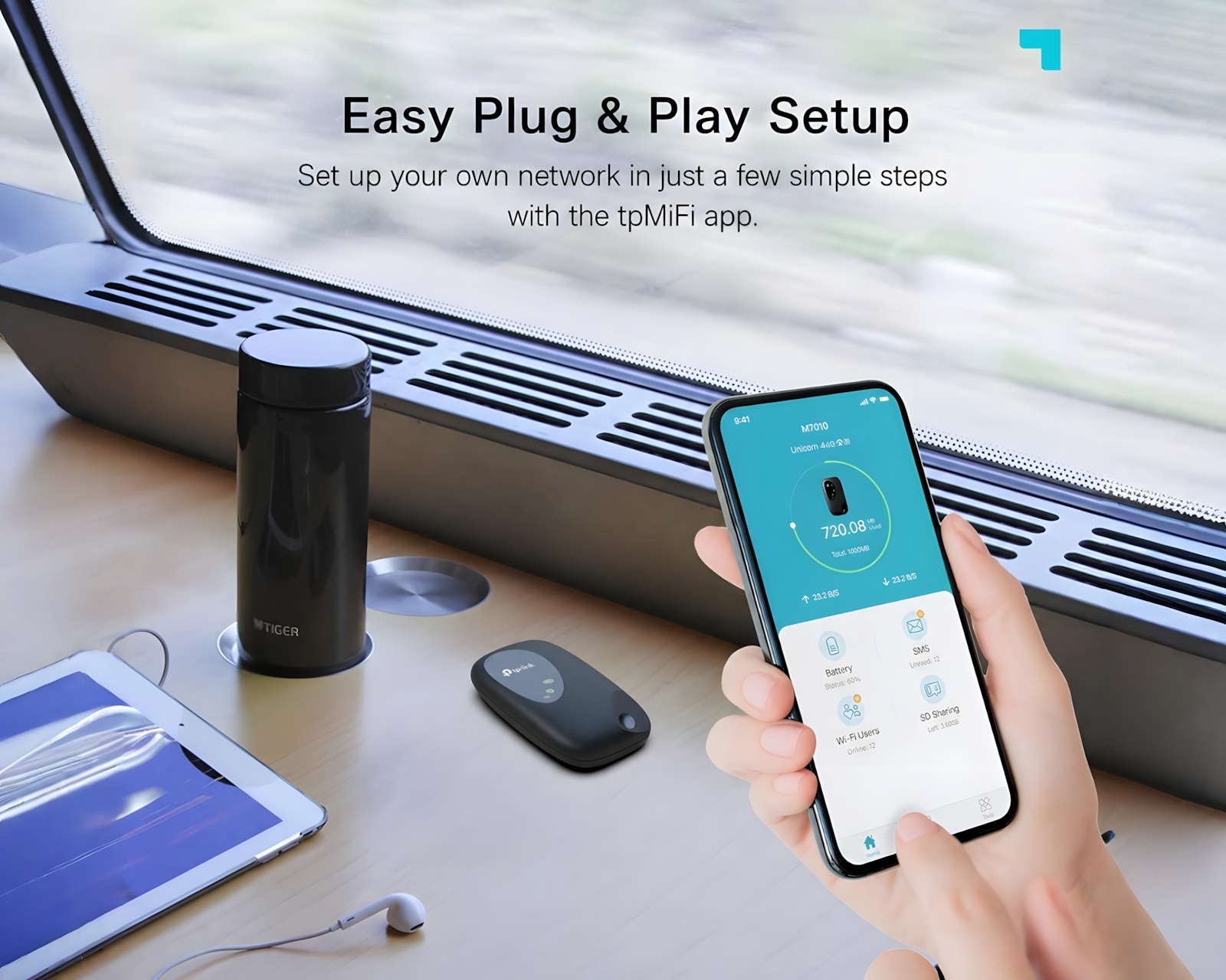 M7000 4G LTE Mobil-WiFi-Router von TP-Link, die eine schnelle und stabile Internetverbindung auf Reisen ermöglicht. Das Gerät unterstützt 4G FDD/TDD-LTE-Netzwerke und bietet eine maximale Datenübertragungsrate von 150 Mbps, was es ideal für HD-Video-Streaming und schnelle Datei-Downloads macht. Mit einem leistungsstarken Akku kann das M7000 bis zu 8 Stunden lang eine geteilte 4G-Verbindung bereitstellen.Das Design des Produkts macht es einfach zu bedienen; legen Sie einfach eine SIM-Karte ein und drücken Sie den Netzschalter, um den Hotspot innerhalb einer halben Minute zu aktivieren. Es ist mit einem LED-Display ausgestattet, um die Verbindung und den Status einfach zu überwachen. Das M7000 kann bis zu 10 Geräte gleichzeitig verbinden, was es perfekt für sowohl persönliche als auch professionelle Nutzung macht. Mit der tpMiFi-App haben die Benutzer die Möglichkeit, ihre Verbindungen zu verwalten und Datenlimits festzulegen.