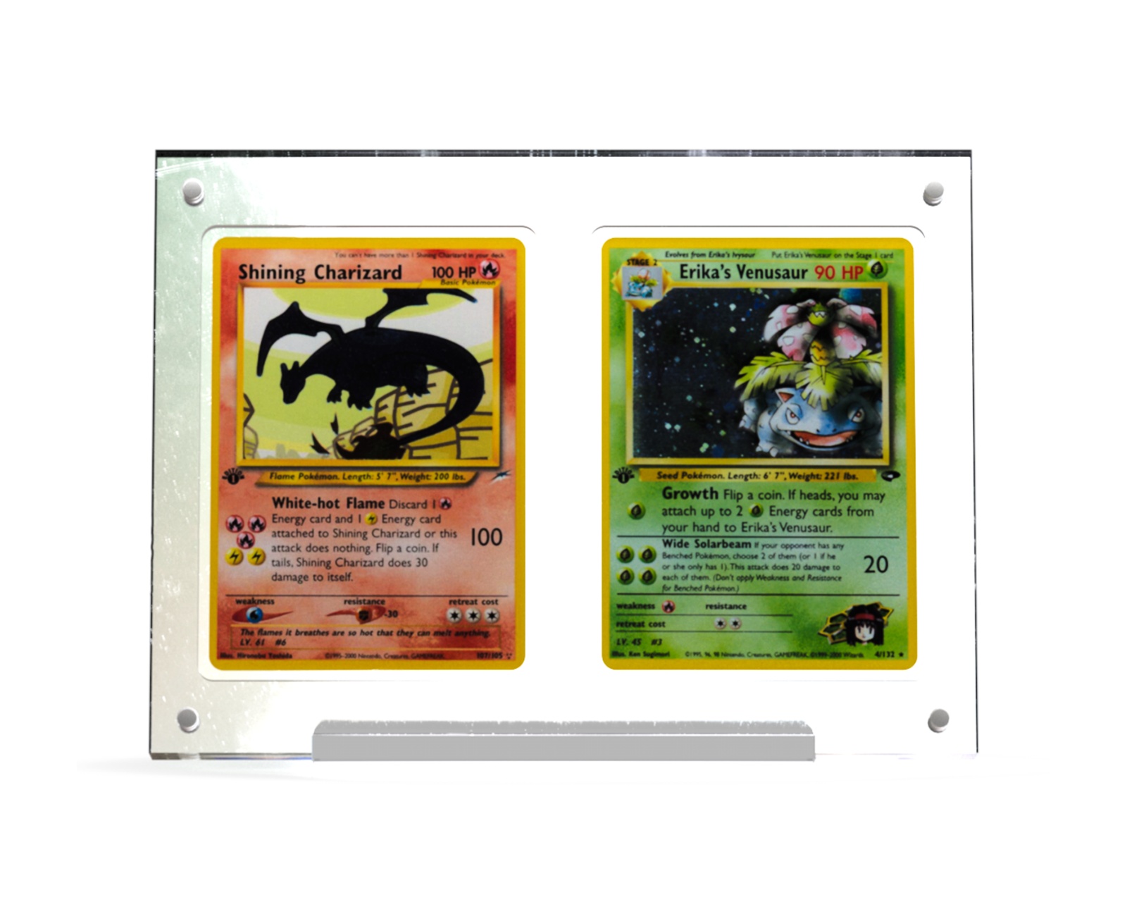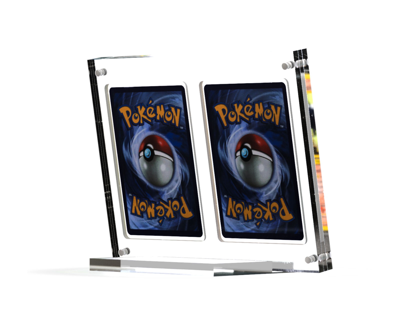 Duo ist eine Kartenhalterung für Sammelkarten von MaxCustom, die entwickelt wurde, um bis zu zwei Karten, wie Pokémon-Karten, zu präsentieren. Das transparente und elegante Design sorgt dafür, dass die Karten maximale Sichtbarkeit erhalten, was für Sammler, die ihre Karten hervorheben möchten, besonders wichtig ist. Das Produkt ist auch in einer Trio-Version erhältlich, die drei Karten zeigt.Zusammenfassung